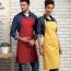 65% poliestere, 35% cotone twill. Grembiule con pettorina regolabile in tessuto, allacciatura posteriore con lacci di 90 cm. (Colori Denim 265gsm).